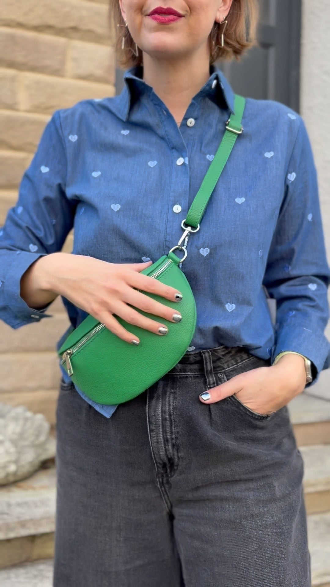 A fun update on a classic denim shirt, this fabulous design features dainty embroidered love hearts. Crafted from 100% natural cotton in a mid-wash denim blue, this piece is a seasonal essential. Finished with a classic shirt collar and button up front.