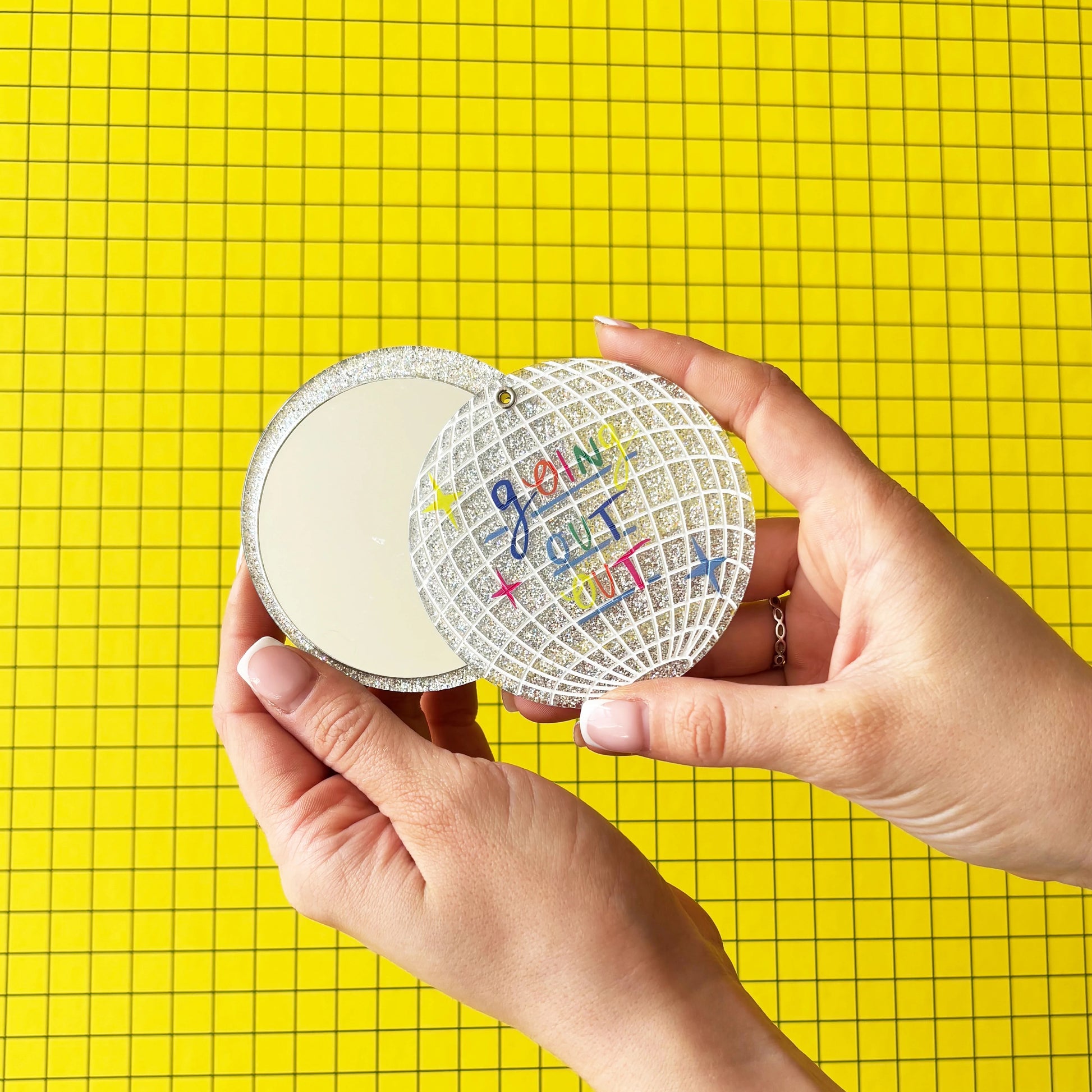 Our sparkley disco ball compact mirror is the pefect accessory for touching up your lippy!.
