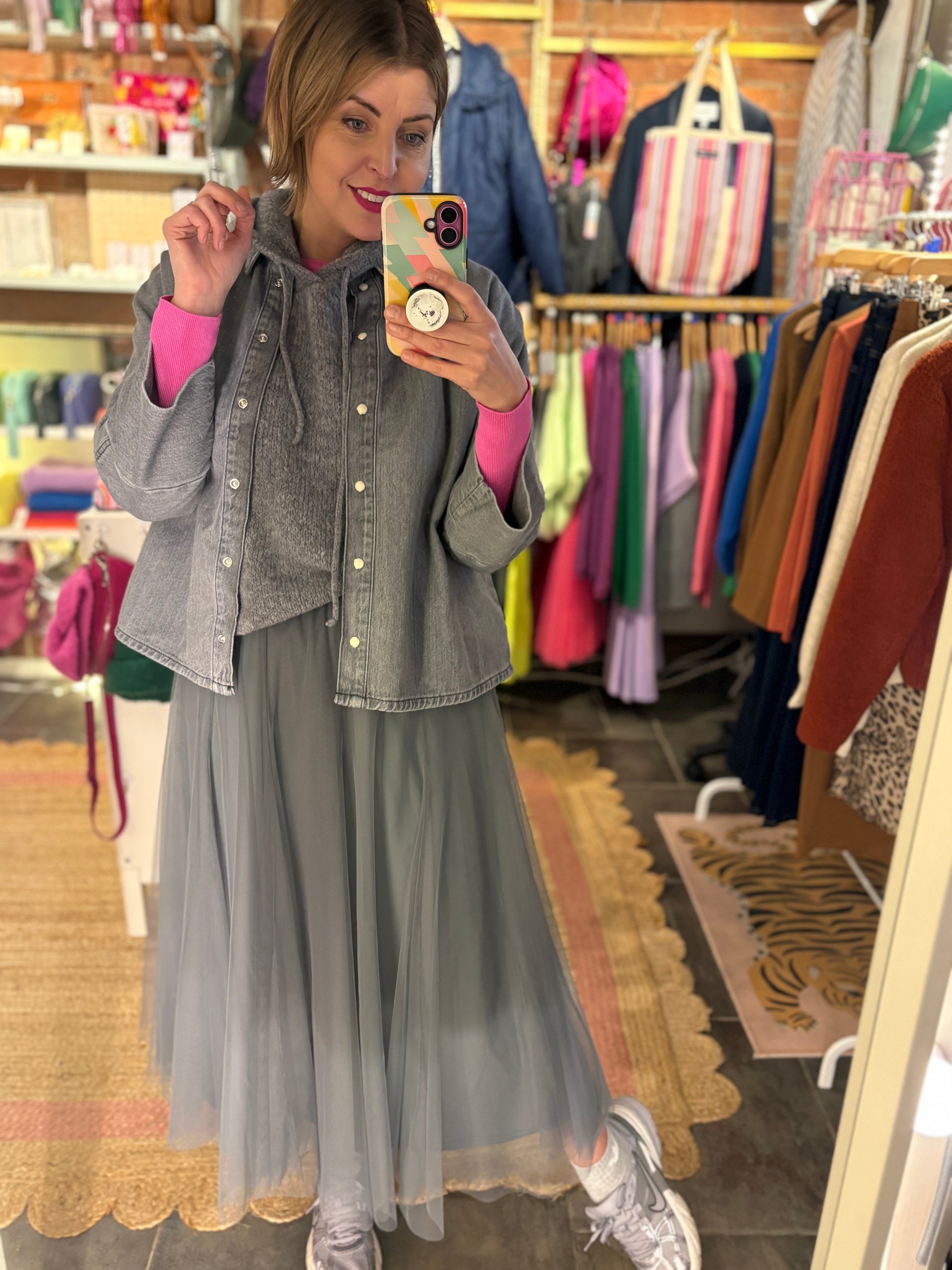 Elevate your transitional wardrobe with this expertly crafted grey denim shirt jacket.