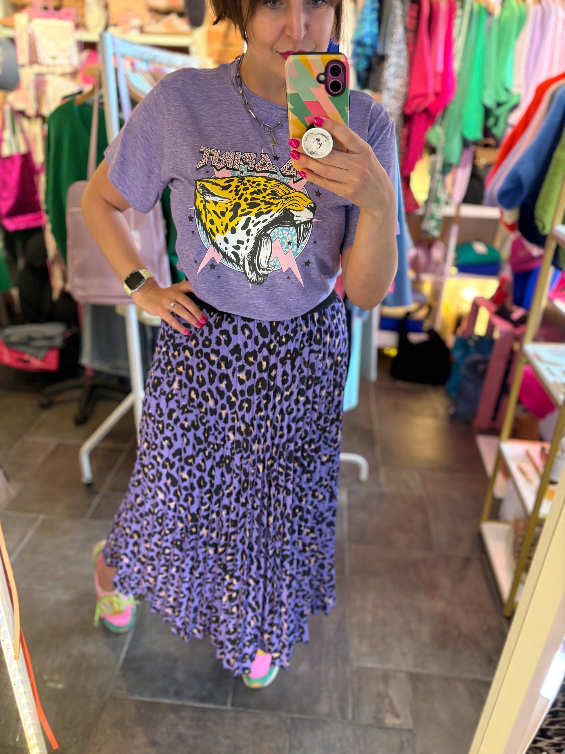 Leopard Print Pleated Skirt