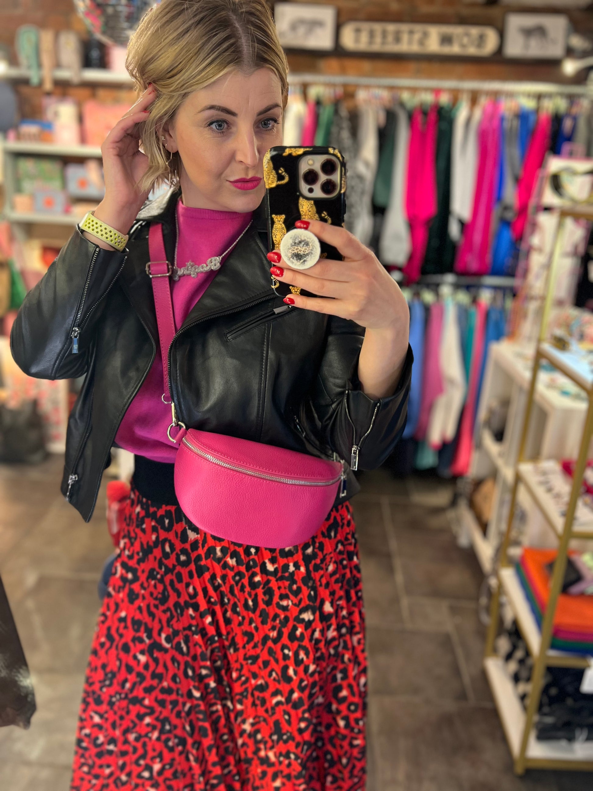This elasticated waist and pleated leopard print design is flattering and versatile