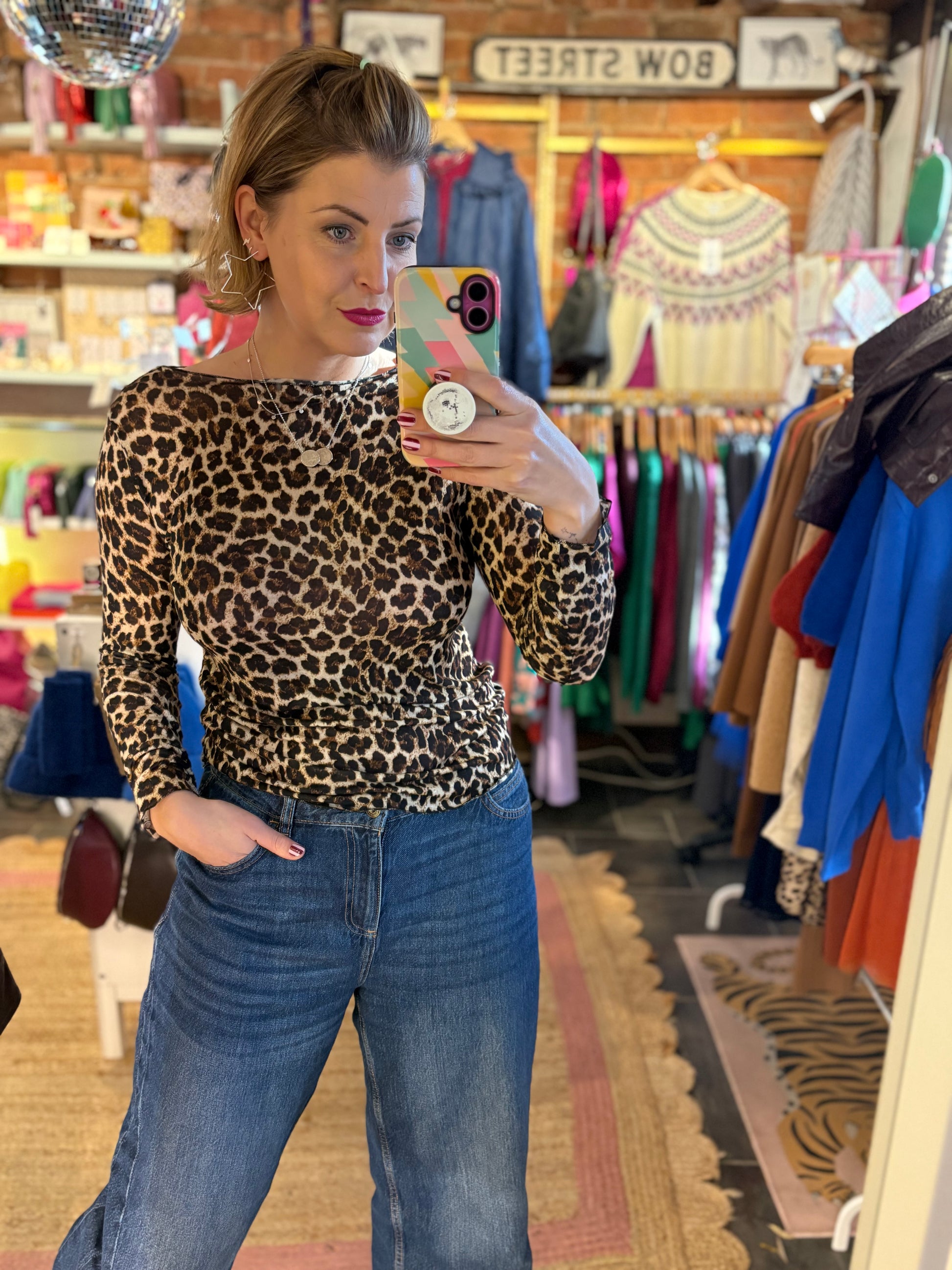 The lightweight construction and sumptuous soft modal & cashmere finish make it an ideal layering foundation beneath knitwear, while the leopard print introduces sophisticated pattern play without overwhelming your silhouette.