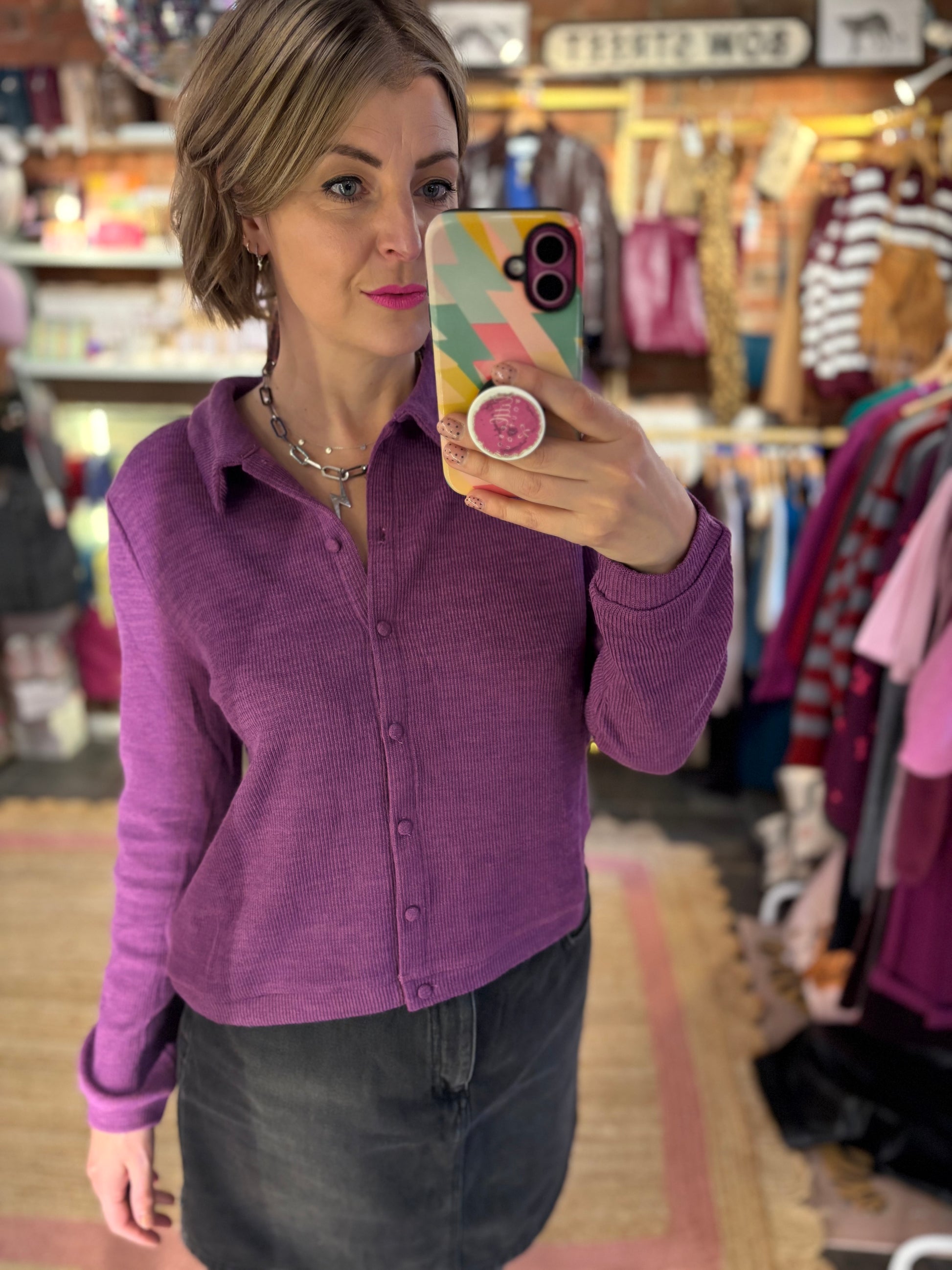 Discover the ultimate comfort in our Ribbed Button Up Short Shirt. Made with ribbed stretch jersey, this shirt will feel like a second skin.