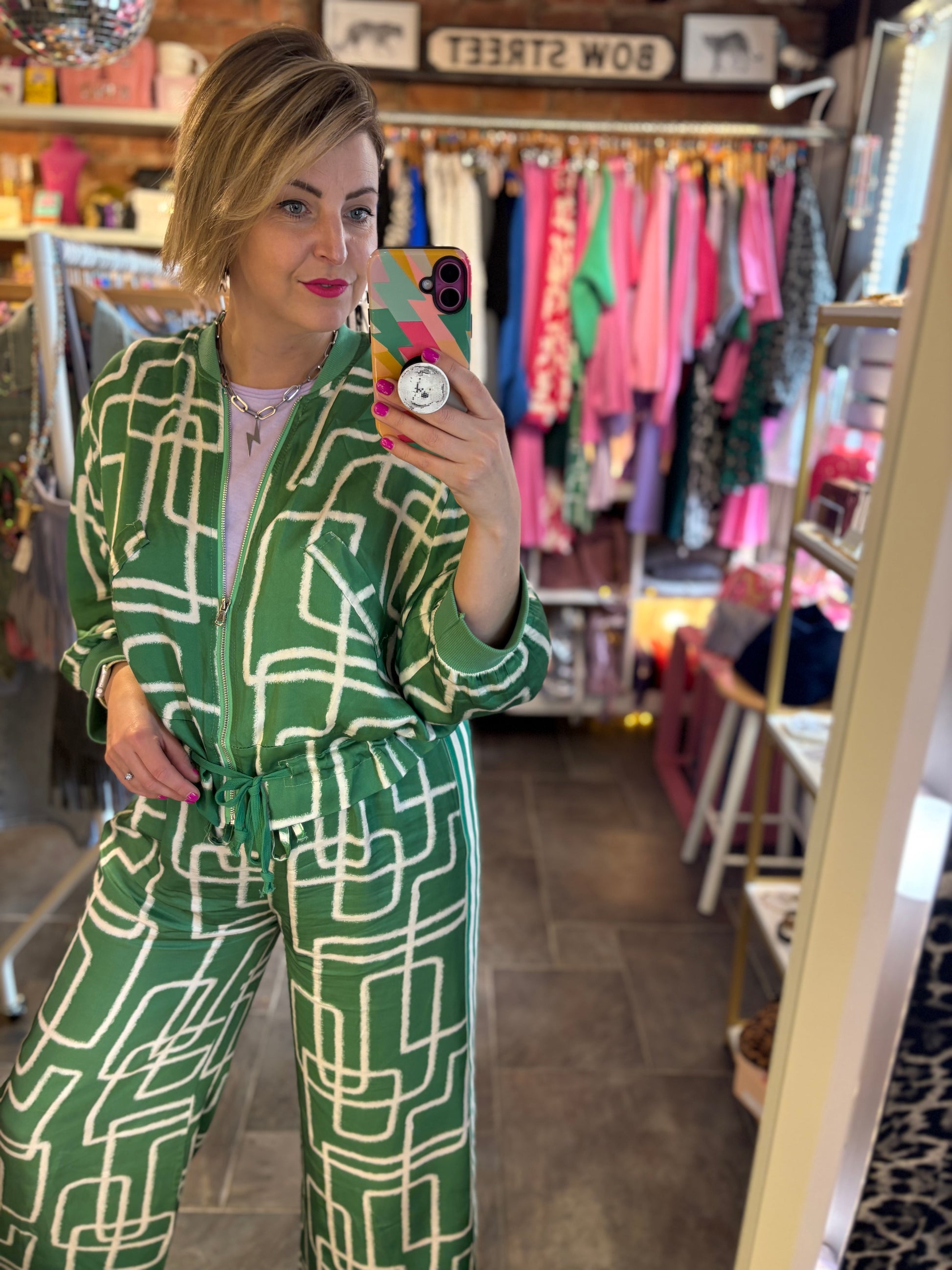 Super soft and Super Cool summarise this quirky geometric bomber co ord perfectly!